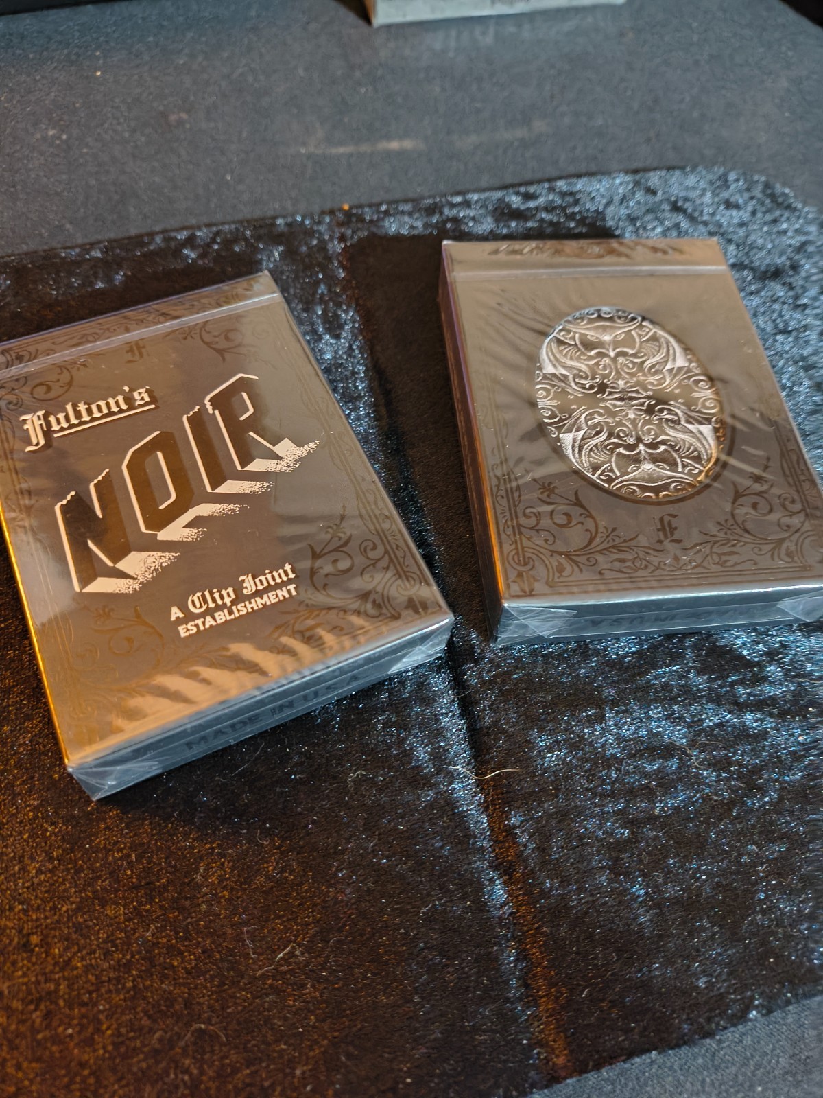 collectible playing cards, fulton’s noir, dan and dave playing cards, film noir deck, uspcc limited edition, crushed casino stock cards, clip joint successor, white jazz playing cards, luxury poker decks, designer tuck case cards, hand illustrated card deck, brad fulton cards, rare playing card collection, cinematic cardistry deck, embossed foil tuck box